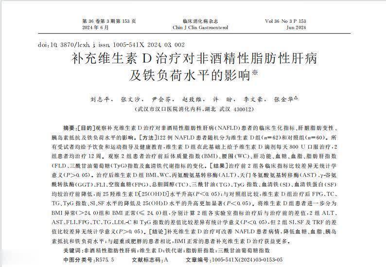 参考资料[1]刘志平春安配资,补充维生素D治疗对非酒精性脂肪性肝病及铁负荷水平的影响,武汉市汉口医院消化内科,2024-06